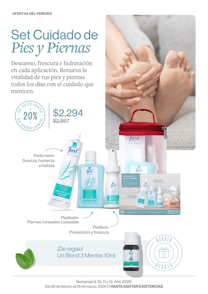Un mini spa en casa con las fórmulas naturales de Just no es solo un momento de descanso… ¡es un acto de amor propio! Aprovecha las ofertas de nuestro Período 3, válidas del 26 de febrero al 25 de marzo de 2026 (o hasta agotar existencias):